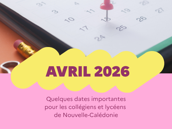 Quelques dates à retenir en avril 2026 par les collégiens et lycéens de Nouvelle-Calédonie.
