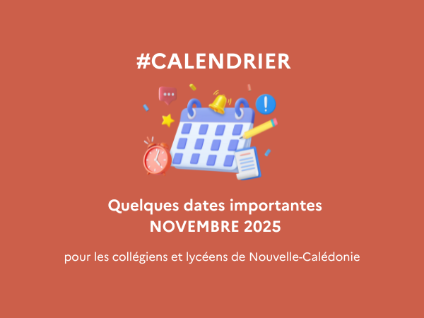 Quelques dates à retenir en novembre 2025 par les collégiens et lycéens de Nouvelle-Calédonie.