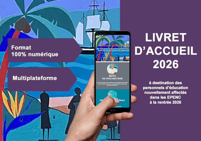 Ce livret d’accueil au format 100% numérique vise à accompagner les premiers pas des enseignants et personnels d’éducation nouvellement affectés en Nouvelle-Calédonie à la rentrée 2026.